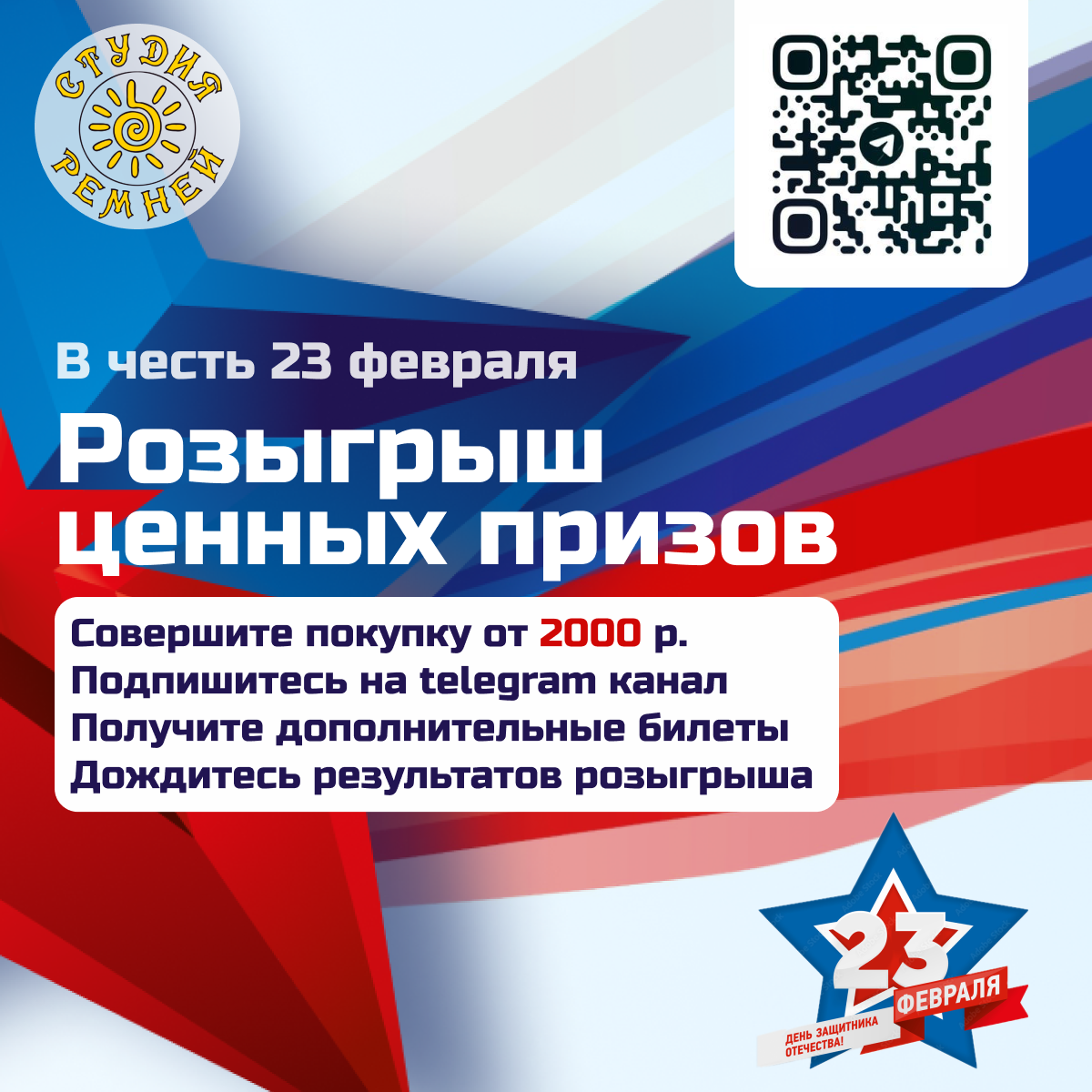 Праздничная акция к 23 февраля от «Студии Ремней»🎖️